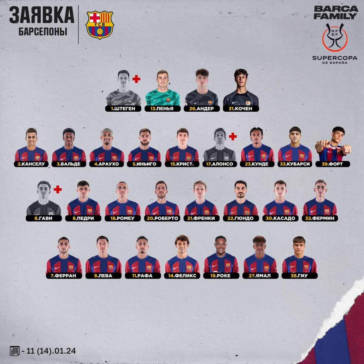 Без Канселу, но с Бальде. Стартовый состав «Барселоны» на матч Суперкубка против «Осасуны»