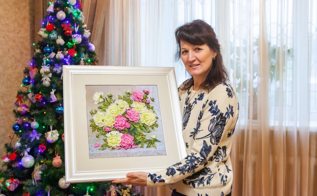 — В молодости у меня было много творческих увлечений: я вязала, шила, плела макраме, — рассказывает Наталья Антониновна. — Мне всегда нравилось что-то делать руками. К вышивке лентами я пришла в 2015 году, когда увидела подобный вид творчества в интернете. Я сразу влюбилась! Начала изучать вопрос, интересоваться, выписывала литературу, покупала книги. В Сети смотрела мастер-классы. Но все же до многого я доходила сама. Считаю, что в творчестве каждый должен делать что-то свое, чтобы отличаться от других, чтобы работы не получались у всех одинаковыми. Я многое придумываю; есть вещи, которые делаю только я.