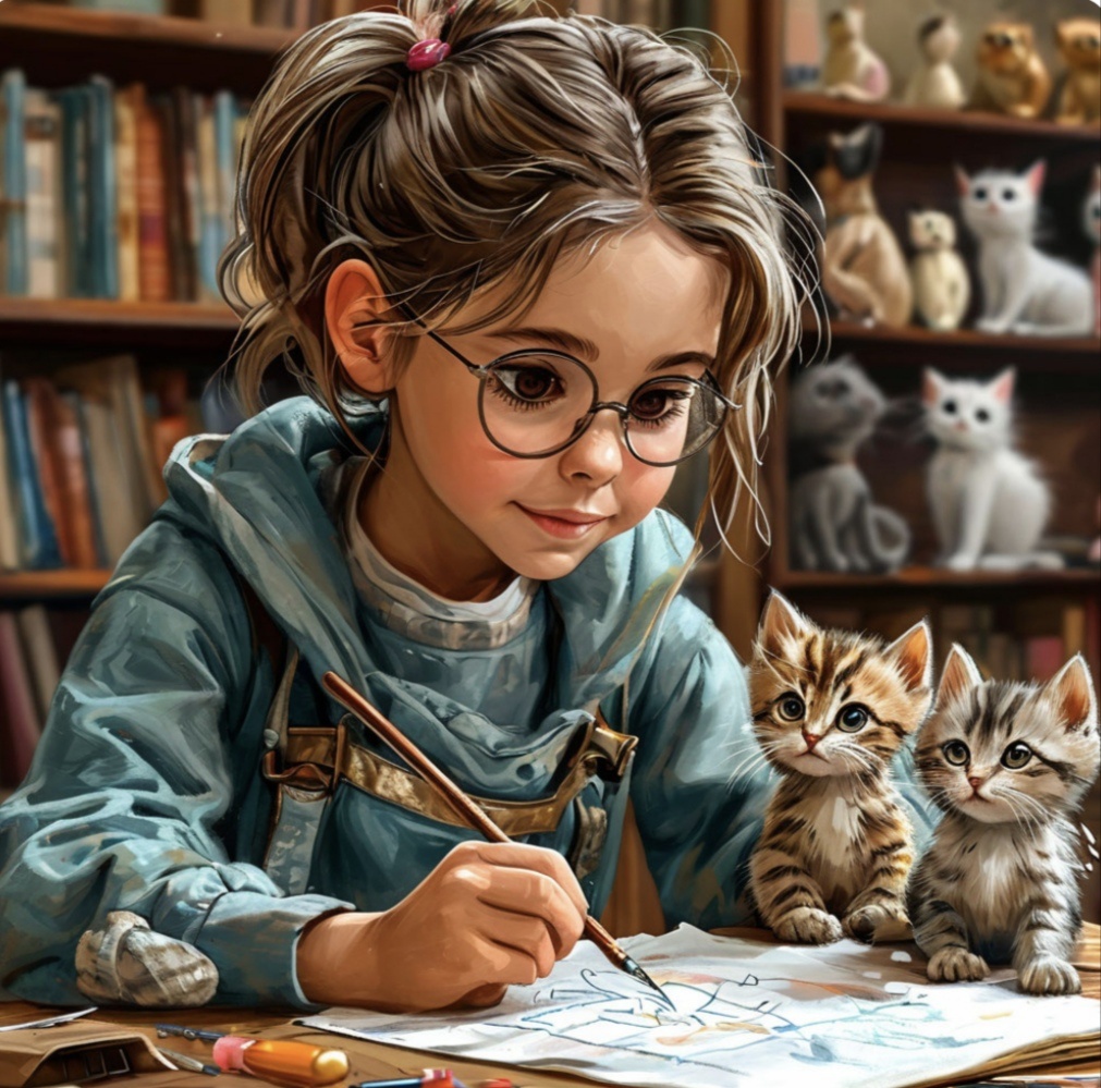 Я открыла свой альбом для рисования. Разложила краски и карандаши. Нарисую я чудесные создания: С мягкой шерстью эти малыши, Цвет коричневый, оранжевый и белый Нарисую я на лапках у котят, Ну, а хвостик нарисую серый Белых пятен, будет штучек пять. Нарисую носик, розоватый, Ушки серенькие с белой полосой, Глазки круглые и широковаты, А усы, длины большой. Вот таких я нарисую, Чудных, маленьких котят. Рядом миску нарисую, Очень пить вдруг захотят.