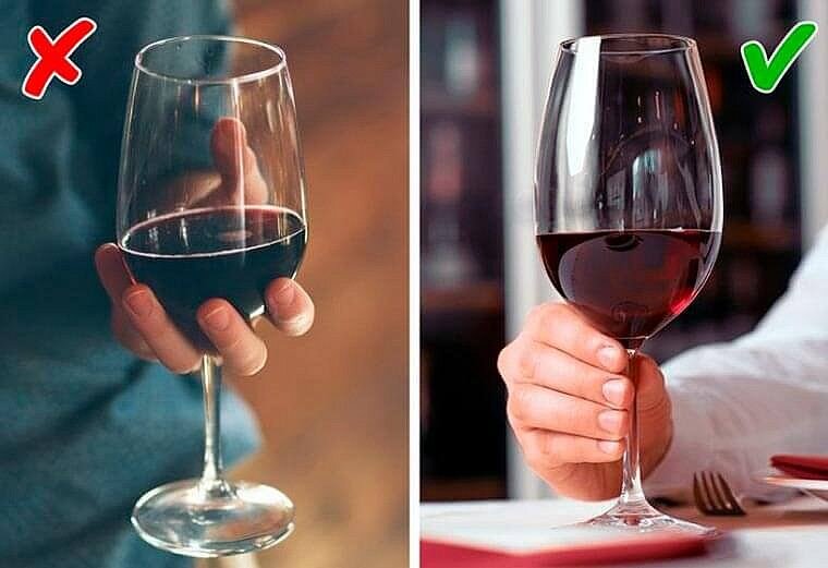 Существует правильный и неправильный способ держания бокала с вином. Необходимо держать бокал за ножку, а не за саму чашу, так как тепло вашей ладони будет нагревать напиток. #ИнтересныйФакт #Вино
