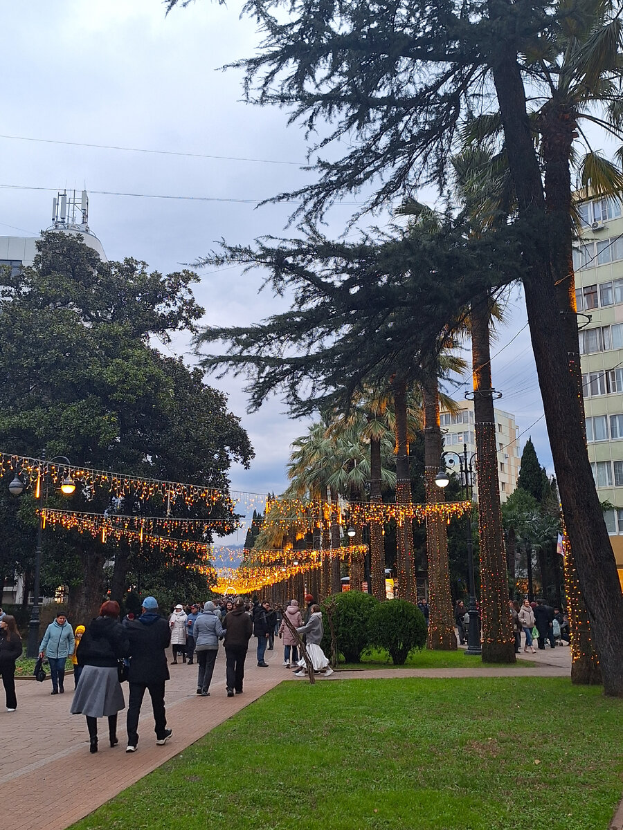 В новогодние выходные мы решили съездить в Сочи на 3 денечка. В первый день мы пошли изучать красиво украшенные улочки города. Вокруг зелень, новогодние пальмы, красота. Путь мы свой начали с главной пешеходной улицы - Навагинская улица. Уютная улочка с высокими пальмами. По этой улочке мы дошли до парка Ривьера. Современный парк, много развлечений для детишек, уютные лавочки под деревьями, скрывают от яркого солнца. От парка дошли до набережной, посмотрели на зимнее море, насладились морским воздухом. Даже зимой на море много рыбаков. Дальше дошли до Дендрария, там очень уютно, все вокруг в зелени, слышно пение птиц. Здесь можно отдохнуть душой и телом. На этом наша прогулка закончилась. Отлично провели время, уходили свои ноги, но остались довольны. На второй день отдыха мы поехали на гору Ахун. подробнее про гору я рассказала в этой статье. В последний день мы поехали в Сириус в парк, посетили хоккей. Подробнее смотрите ниже в статье.
