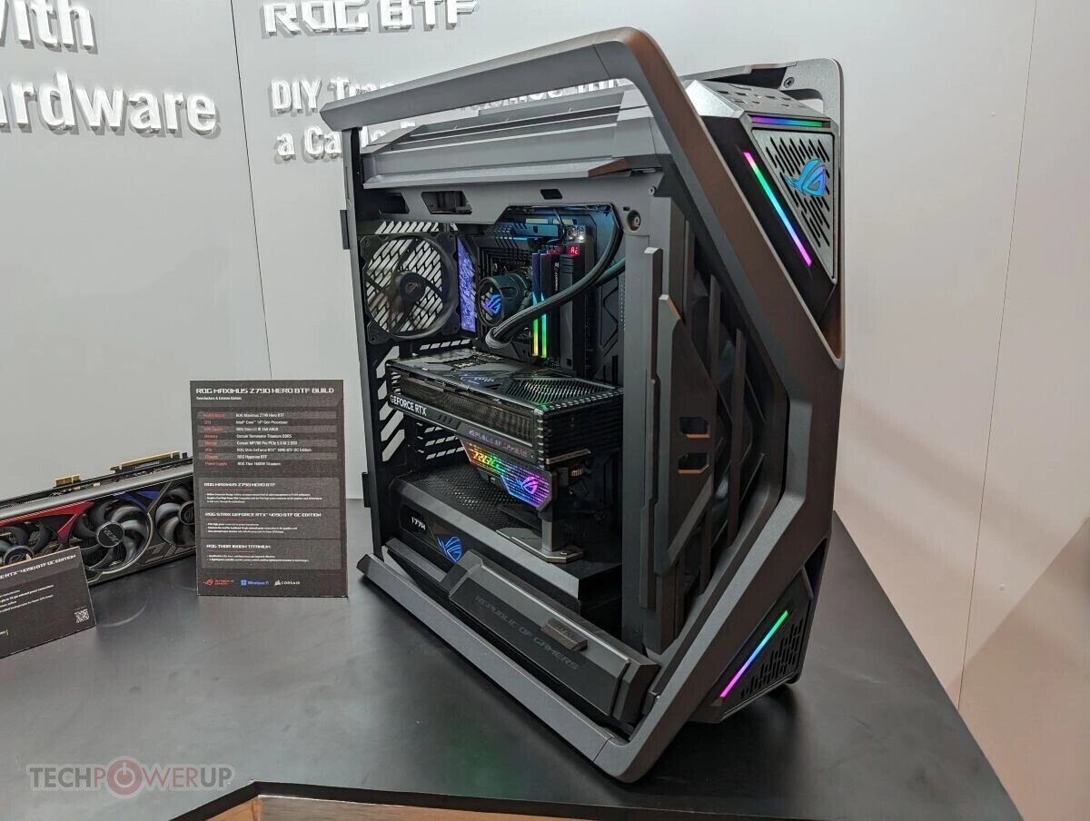Некоторое время назад компания ASUS анонсировала видеокарты NVIDIA RTX 40, которые получают дополнительное питания через специальный коннектор рядом с интерфейсом PCIe, а не через стандартный разъем питания 8 или 16-pin. Теперь ASUS показала, что настроена по поводу своего изобретения крайне серьезно и представила сразу несколько видеокарт BTF в сериях TUF и ROG. В частности речь идет о RTX 4090 и RTX 4070 Ti Super ROG, а также о пока точно не названных решениях в линейке TUF. Для подачи дополнительного питания на эти видеокарты все же понадобится кабель, но он будет спрятан за материнской платой, которая получит специальный разъем для самой видеокарты и 16-pin (12VHPWR) сзади. Цены на новинки пока не объявлены, да и точные сроки их появления в продаже также пока не сообщаются.