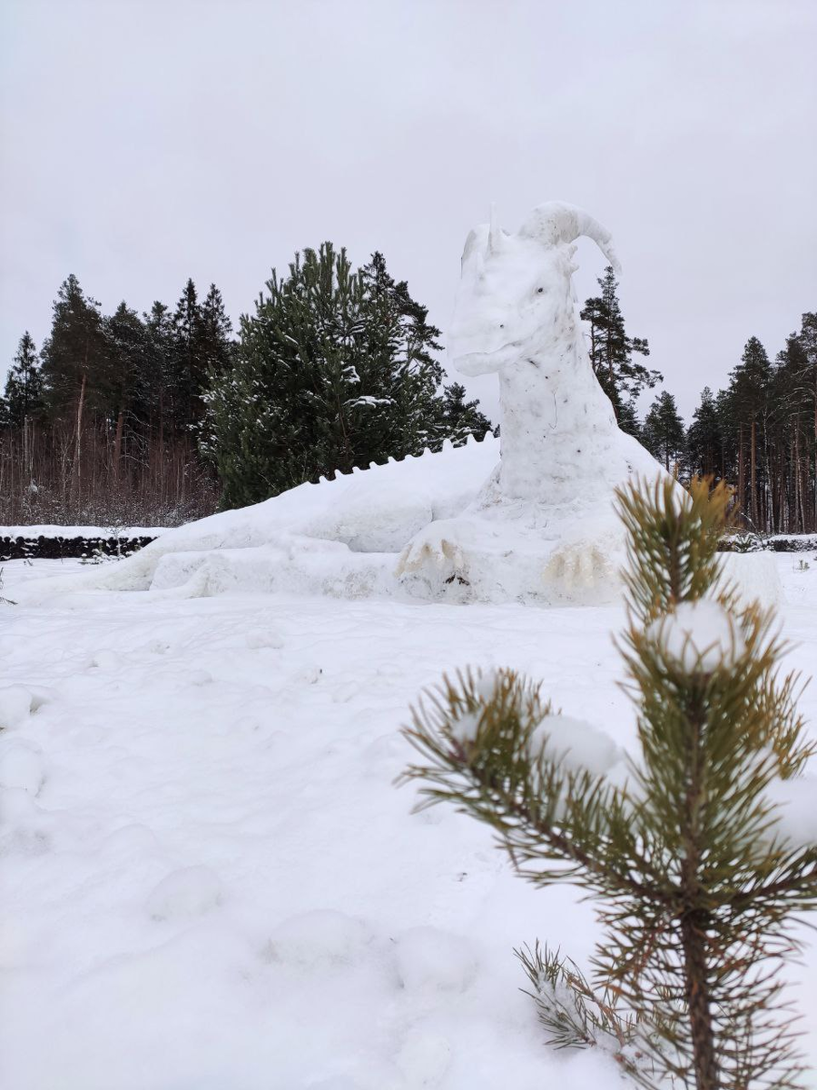 "Да ты что, кривые у меня руки". И вот он своими кривыми руками сотворил... ДРАКОНА! С Вовой я знакома больше 10 лет, сколько веломаршрутов мы вместе проехали, сколько болот исходили, сколько земляники съели... И если бы я не знала этого человека лично, возможно никогда бы и не узнала о снежном драконе, так как создан он в месте, где зимой человек редко ходит. Мне удалось задать несколько вопросов по поводу создания дракона лично его создателю. В первую очередь меня конечно же интересует, сколько времени ушло на создание снежной скульптуры. Создание дракона началось 21 декабря и продолжалось до 8 января. На работу ушло 93 часа. В новогодние праздники в наших краях держались низкие температуры, столбики термометр