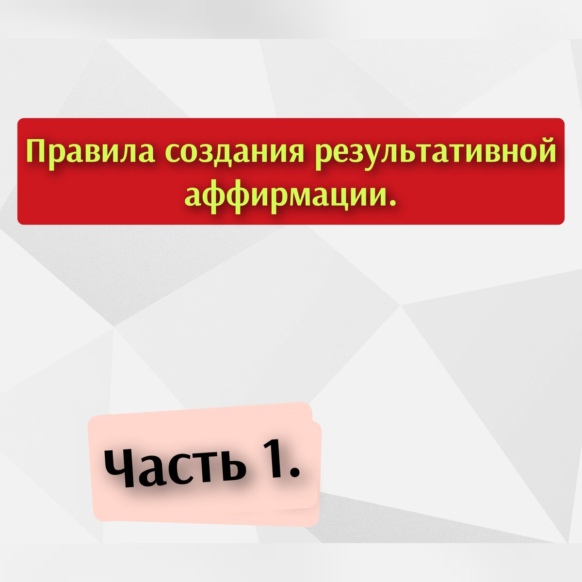 У хорошей аффирмации есть свои правила создания. Их всего 5. Правило 1. Подумайте и представьте себе желаемое. Для того, чтобы использовать это правило, необходимо понять, какую установку (денежную программу) вы хотите изменить и что получить вместо нее. Я прошу вас обращать внимание только на эту выбранную программу и создавать антипод конкретно для данной программы. Представьте то, что вы хотите получить взамен и создайте аффирмацию под определенную задачу. Например: у человека есть негативная программа "Деньги - это опасность". В этом убеждении живёт страх, что деньги принесут проблемы. Для создания позитивной аффирмации мы спросим у себя: "От чего я хочу избавиться?" и " Какое состояние, убеждение, результат я хочу получить?" Замечу, это два совершенно разных вопроса. Ответы: "Страха не хочу. Хочу спокойствие, комфорт и уверенность". Получается аффирмация: "Деньги - это комфорт и уверенность". Как делает обычный человек? Он открывает файл с набором аффирмаций, выбирает то, что ему