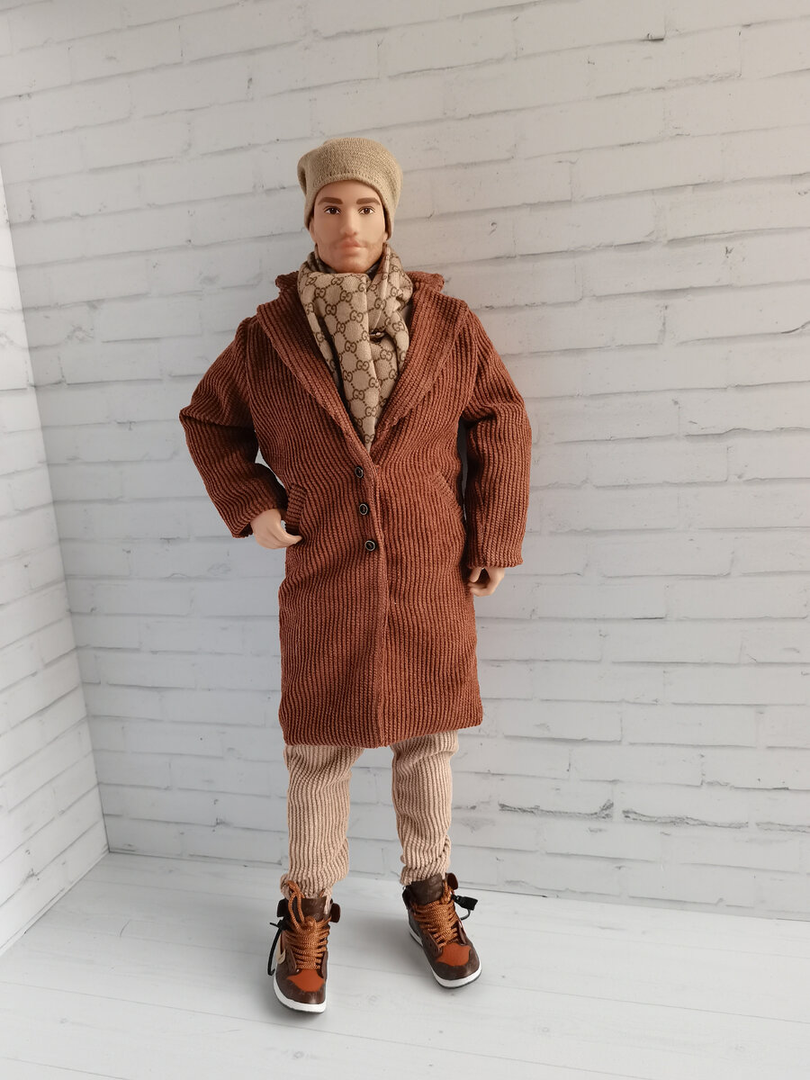 Сегодня снова демонстрация комплекта на кена качка. В этот раз пальто, водолазка, брюки, шапки и шарфы. Пальтишко из вельвета с настоящими кармашками. Не помню уже как делала выкройки, но результат меня очень порадовал. В ближайшее время сошью такое же пальто какой-нибудь из моих дам😊 Водолазка - трикотаж. Брюки из вельвета другого цвета. На брюках сзади кармашки. В этом комплекте больше всего возилась с шапками. Сложно было представить, как их правильно сшить, но вроде получилось. Шарфики куплены в одной из кукольных групп😊 В общем, получился модный парень. А на последнем фото еще и няшный😂 Нравится?