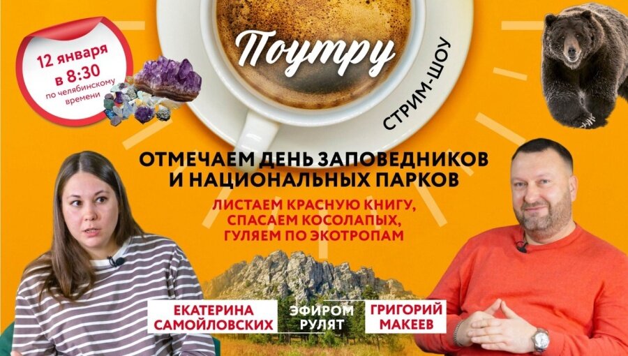 В честь этого завтрашнее традиционное стрим-шоу «Поутру» на «Гранада ТВ» решили посвятить разговору о природе, национальных парках, зверях и птицах, которые живут у нас в регионе. Гостями в этот раз станут замминистра экологии региона Иван Кинёв, заслуженный эколог России Александр Лагунов и исполнительный директор Фонда зоозащиты «Спаси меня» Екатерина Карпенко. Во время стрим-шоу «Поутру» можно будет узнать, кто в Челябинской области получил титул «Рыцаря леса», когда и где на Южном Урале появится реабилитационный центр для медведей, можно ли соблюсти гармонию между развитием туристической потенциала и сохранением первозданности природных богатств, а также многое другое. Прямая трансляция шоу будет доступна в группе «Гранада ТВ».
