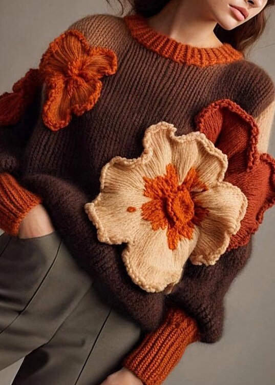 Доброго времени суток и добро пожаловать на Вязальный канал! Сегодня решила поделиться очень красивой находкой, а именно идеей украшения вязаного джемпера! Мне попалась эта идея на Пинтересте, после чего я стала искать, откуда растут ноги и нашла представленные ниже джемпера на АлиЭкспресс. А теперь, конечно, давайте посмотрим поближе, о чем я говорю. Только взгляните, как эти чудесные аппликации преображают простые базовые джемпера, связанные лицевой гладью! На мой взгляд, это очень свежая идея, однако и очень смелая. Как повторить? Конечно, любая вязальщица, думаю, сможет повторить такую идею при желании. Цветы и лепестки дя таких аппликаций ввязываются отдельно и впоследствии пришиваются на изделие. При этом, края лепестков остаются не пришитыми, что создаёт дополнительный интересный объем. Кроме того, объемными цветы выглядят из-за того, что связаны лицевой гладью и по краю нет никакой обработки, что позволяет лепесткам закручиваться. Очень эффектно, согласитесь? В общем, мож