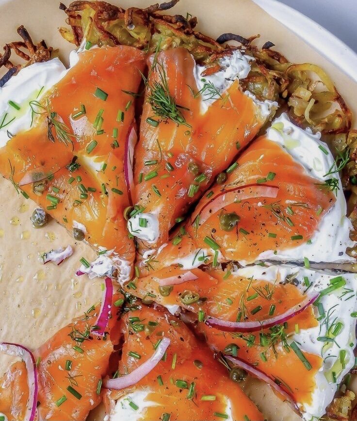 Картофельный блин, как один большой драник. Такой блин намного быстрее готовить, чем драники и выглядит очень аппетитно! Необычный и красивый, этот картофельный блин-драник станет настоящим украшением вашего стола и порадует всех гостей своим неповторимым вкусом. Ингредиенты: Приготовление: ✔️ Картофель натереть на терке. ✔️ Отжать излишки крахмала. ✔️ Добавить соль и перец и перемешайте. Также можно добавить яйцо, но не обязательно . ✔️ Налейте оливкового и сливочного масла в предварительно разогретую сковородку. ✔️ Аккуратно выложите картофель и распределите лопаткой по всей поверхности сковороды, создавая один большой блин. Но не слишком тонко, чтобы еще наш картофельный блин был немного пышным. ✔️ Готовьте около 12-15 минут с каждой стороны на средне-сильном огне или до золотистой корочки. ✔️ И вот, наш картофельный блин-драник готов! Сверху выложите сливочный сыр, зеленый лук, укроп, лосось, каперсы и красный лук. И сверху посыпьте свежемолотым перцем! Наслаждайтесь этим неверо
