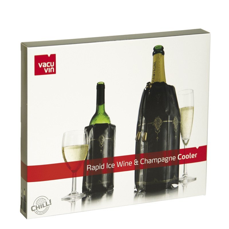 Температура подачи вина — один из важных параметров. Он может подчеркнуть лучшие характеристики напитка. Быстро сделать нужной температуры бутылочку белого или игристого помогут охладительные рубашки. Набор VacuVin RI Wine & Champagne Cooler Classic в роскошном оформлении станет не только полезным аксессуаром, но и стильным украшением.