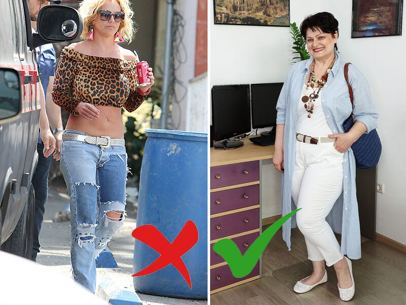 Есть у меня две знакомые, которые старше меня лет на 15, у которых абсолютно противоположные энергетики. Вроде обе взрослые женщины, с высшим образованием, умные, красивые, но воспринимаются по-разному. Одна выглядит как статная дама, а другая с ноткой инфантильности будто постоянно пытается вернуться в детство. И меня осенило, что мнение о них формирует одежда, которую они носят. Как вы думаете, что создало впечатление некой детскости у второй знакомой? Ответ вы найдете в конце. Так вот, если вам за 45, то вот список предметов гардероба, от которых стоит напрочь отказаться. ❌Низкая талия Несмотря на горячий тренд, брюки и юбки на низкой посадке все-таки придуманы для молодежи. Такой крой укоротит ноги и сильно удлинит туловище, создав непропорциональную картину. Такой расклад совершенно не придаст вам изысканности и роскоши, а только создаст впечатление неопрятного образа. ✅Конечно, лучшим решение будет использование высокой посадки брюк, джинс и юбок. Во-первых, это визуально вытян
