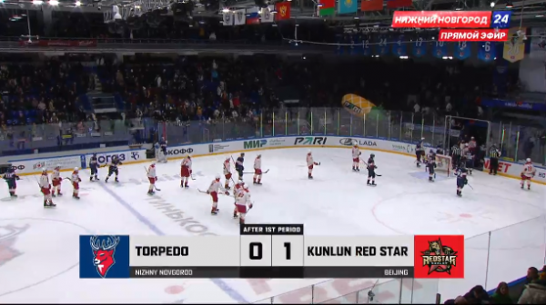 В первом периоде матча КХЛ "Торпедо" - "Куньлунь РС" лидируют "драконы". Счет на табло 0:1. Статистика 1-го периода: Броски: 19-19 ; Броски в створ: 10-8 ; Голы: 0-1 ; Вбрасывания: 7-10 ; Блокированные броски: 6-6 ; Силовые приемы: 4-4 ; Отборы: 3-0 ; Потери: 4-1 ; Перехваты: 4-5 ; Время в атаке: 05:02-03:02 ; Штраф: 2-2. Матч проходит на льду КРК «Нагорный» в Нижнем Новгороде.