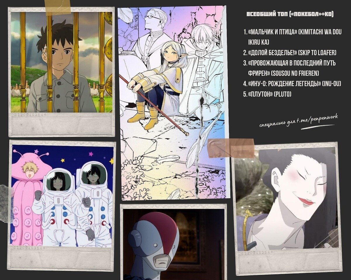 «По факту, год провальный на аниме. Практически нет такого, что можно назвать шедевром. Запомнилось немногое. Конечно, есть ещё и Миядзаки. Но речь всё же не о нем. Лет через десять станет понятно, что выдержало проверку временем. Но если сравнивать с другими годами, нет ощущения, когда сильных ярких тайтлов больше, чем влезает в топ. В 2023-м основная масса — это проходные середнячки, крепкие, но не трогающие. А «Ину-о» и «Судзумэ» вышли в 2022-м, так что мимо».