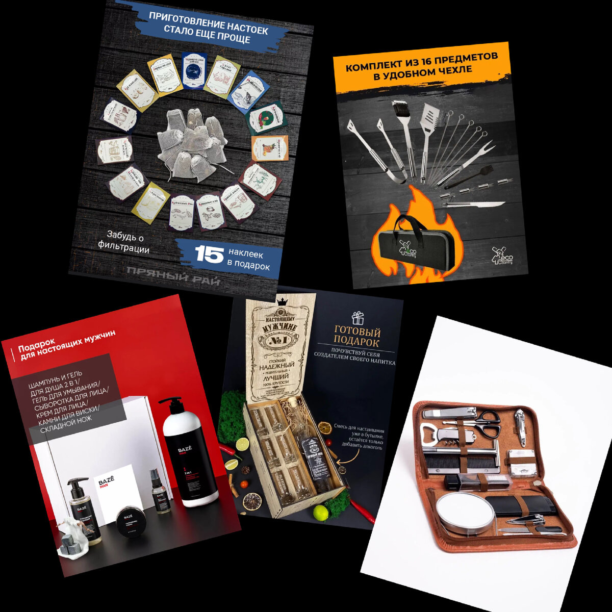 Подборка | 5 мужских подарочных наборов до 1000₽ с WB Привет ✨специально для вас я подобрала 5 подарочных наборов для мужчин с WB до 1000 ₽ 🌶️ 🕺🏼1. Оригинальный подарочный набор «Мини бар » от фирмы - Wood Story 🥃 Интересный комплект включает в себя: Артикул : 114450267 🕺🏼2. Подарочный набор мужской косметики от фирмы BAZE 🧴 Это идеальный подарок для мужчины который ценит свой внешний вид и заботиться о себе ! В наборе вы найдете : Артикул : 193844405 🕺🏼3. Набор для приготовления 15 НАСТОЕК от фирмы ПРЯНЫЙ РАЙ 🍾 Подарочный набор для приготовления домашней настойки на водке или самогоне в ФИЛЬТР-ПАКЕТИКАХ ! Очень легок в приготовлении , упакован в надежной и красивой упаковке 🎁 Артикул: 172932142 🕺🏼4. Набор для ухода за лицом от фирмы xSmail ✂️ Подарочный набор состоит из 13 предметов : Артикул: 109668169 🕺🏼5. Подарочный набор для барбекю от фирмы EcoCountry🥓 Шашлычный набор незаменимая вещь для прикл топления мяса на открытом огне , в набор для бар