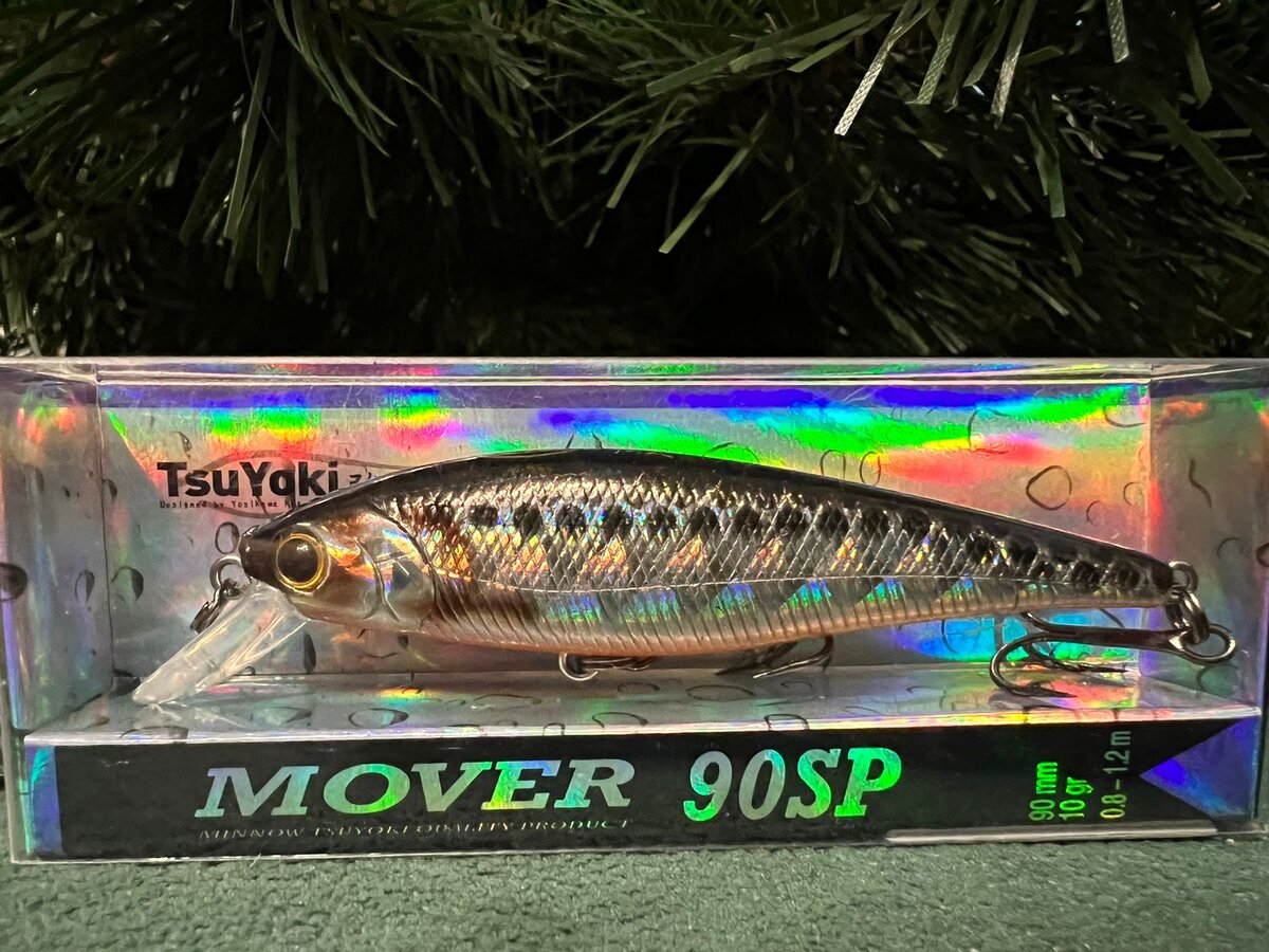 Tsuyoki mover, приманка которую приобретал для ловли щуки и крупного окуня на небольшой речке Елань Этот воблер я приобрел относительно недавно, так как видел его в работе у моего друга, и пришлось самому так на него неплохо половить. В один день нам удалось поймать несколько щук за 1 час. Tsuyoki mover 90sp небольшой классический минноу . Технические характеристики: Заявленная длинна - 90 мм, но это длинна с лопаткой, настоящий размер воблера около 80 мм; Вес - 10 грамм; Степень плавучести заявленная производителем - SP. У меня mover медленно всплывает даже с поводком 0,40 мм из струны. Но мне такой вариант в исполнении данного воблера нравится больше, так как я ловлю чаще всего на мелководье; Заглубление - от 0,8 до 1,2 метра. Оснащение - 2 острых крючка VMC и крепкое заводное кольцо. По шумности Tsuyoki mover 90 sp малошумный в отличие от своих старших братьев (100 sp и 128 sp). Металлические шарики внутри воблера имеют глухой звук. Расположение и количество шаров внут