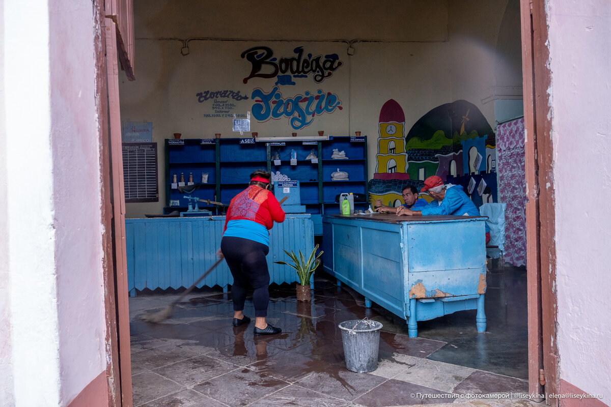 Короче, типичные магазины на Кубе выглядят как-то так. И нет, это не какая-то лавка в глуши или на отшибе. Такие магазины есть и в центре Гаваны, и в центре Тринидада, да и вообще везде. Такие магазины называют Botega, и местные там могут купить базовые продукты по талонам. Выбор очень скудный: рис, масло, курица, иногда — рыба и ветчина. Редко-редко — яйца и молоко.