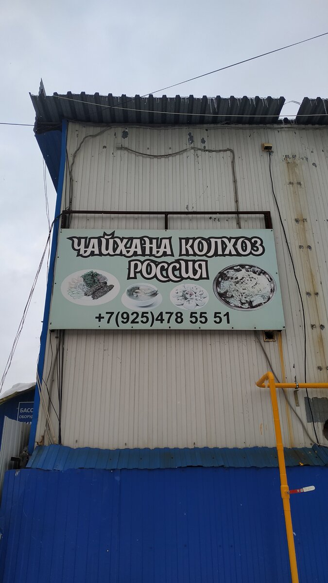 И там я обнаружил вот такое замечательное кафе с названием "Чайхана колхоз Россия") Разумеется на этом рынке одни сплошные мигранты и кафе это явно сделано для них! То есть у них там своё собственное государство в государстве) Я приехал домой и решил ради интереса проверить название этого кафе.