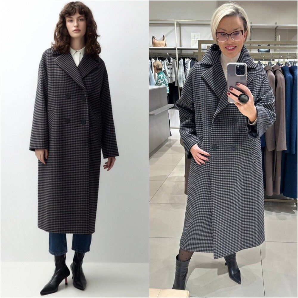 Мне очень приглянулось это пальто в клетку, в принципе классика вне времени, поэтому денег на такое не жалко. Модель достаточно свободная, чтобы с легкость надеть под нее объемный свитер, но при этом красиво подчеркивает фигуру. Смотрится очень элегантно. На зиму подойдет, но не на сильные морозы. По ощущениям где-то до минус 15 без сильного ветра.