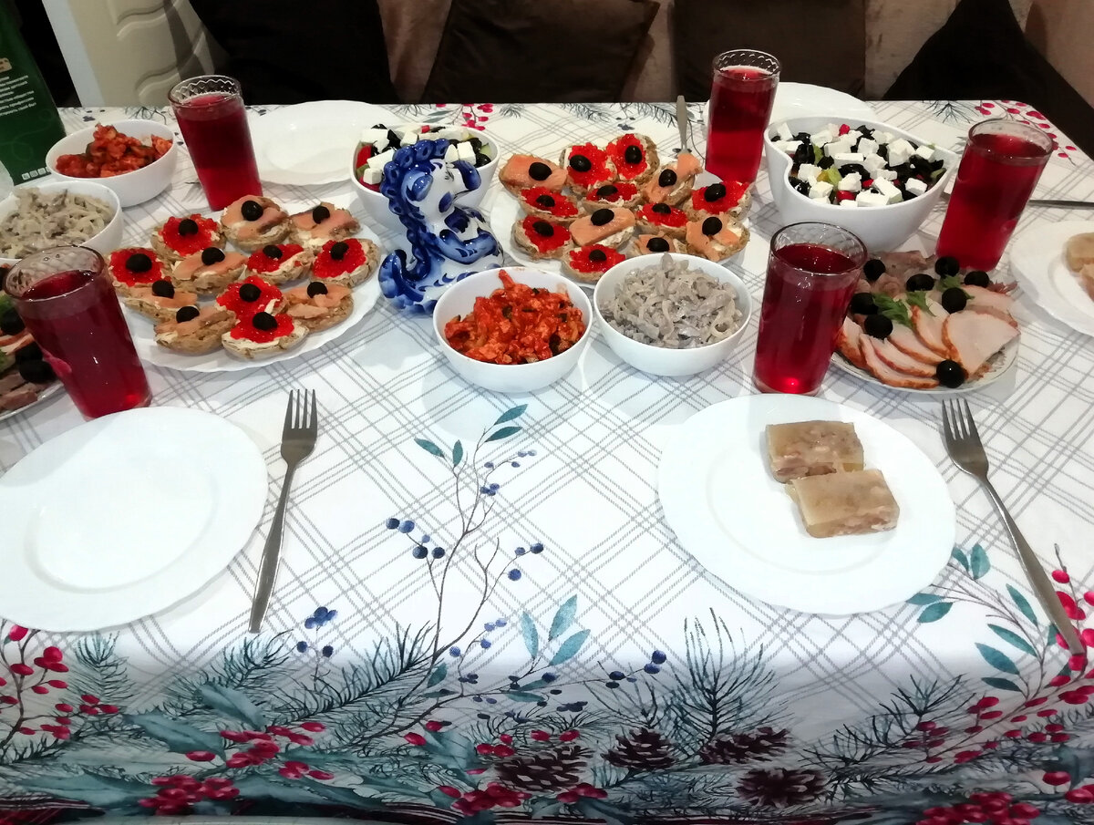 В этом году мы встречали Новый Год в гостях у родителей. Мама заранее планировала праздничное меню, чтобы оно было вкусное и полезное. На этот раз приготовили всего три салата, никаких классических «шуб» и оливье делать не стали. В последние годы мы как-то стараемся избегать обилия майонезных салатов на праздничном столе. На Новый Год был только один салат, заправленный домашним майонезом – печеночный. Кстати, если домашний майонез есть в небольшом количестве, то он не вызывает ни прибавки в весе, ни тяжести, ни изжоги, проверено на собственном опыте. В конце статьи будет ссылка на мой рецепт домашнего майонеза. Какие мы готовили салаты? 1. Греческий 2. Печеночный 3. Томатный Греческий салат Думаю, что с греческим салатом знакомы все, это огурцы, помидоры, листья салата, сыр фетта и вкуснейшая лимонно-оливковая заправка. Печеночный салат Это очень сытный белковый салат, он делается из отварной куриной печени и сердечек, с маринованным в уксусе репчатым луком и заправляется майонезом. В