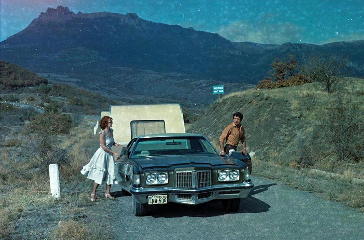 Продолжу тему необычных автомобилей в отечественном кино, начатую мною, но временно замороженную. Предыдущие части тут: Ненадолго вернемся к фильму "Мираж" 1983 года, снятому по мотивам романа Джеймса Х. Чейза «Весь мир в кармане» (1959). Конечно, кроме "Нивы", замаскированной под броневик, про которую я рассказывал в одном из первых постов, в фильме очень много интересных автомобилей, большей частью - иностранных. Вообще, их в "Мираже" столько, что, несмотря на то, что фильм целиком снимался в Крыму, в самом деле можно поверить, что съемки проходили где-то за железным занавесом. Да, хотя по сюжету действие разворачивается в США, значительная часть автомобилей - европейские и в США или вообще не продавались, или продавались с изменениями экстерьера (главным образом это касается бамперов и оптики), чтобы соответствовать американским требованиям. Не буду подробно останавливаться на каждом авто, заострю внимание лишь на тех, что сыграли важную роль в сюжете. 1972 Pontiac Grand Ville Основ