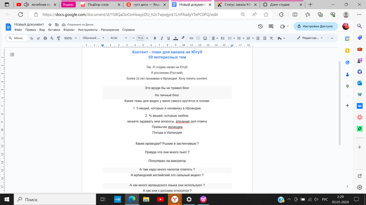 Села писать контент - план для канала на Ютуб. Засекла время. Интересно, за сколько уложусь. Заказчик - прелесть. Подкинул разные идеи. Приятно с такими работать - показывает нужное ему направление.