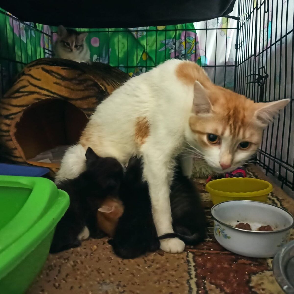В ноябре был пост, как одна наша волонтёр взяла под свою ответственность кошку с новорожденными котятами, которых она родила в подъезде, а через неделю она же увидела пост SOS о поиске кормящей кошки для четверых новорожденных котятах, оставленных кем-то в картонной коробке возле мусорки.