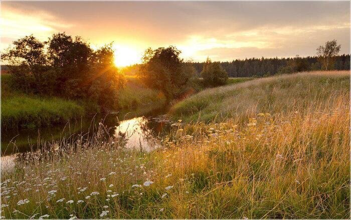 Отгорело заката рыбацкого зарево, И повеяло с луга дыханием вечера - Самолетом над речкой туманное марево. Опустилось по воле седого диспетчера. Поплавок из пера уж давно не колышется, И былинку зубами приятно размалывать. «Му-у-у» коровье надрывное издали слышится, Мол, доите уже! Вымя тянет не малое. Лес на том берегу, как защита от вечности. Частоколом стволов он пугает, маня. Я лежу на фуфайке в приятной беспечности - В мире нет ничего, кроме этого дня. Кроме этой минуты, простой и таинственной. Когда водишь по небу волшебным мелком - Вот бы встретить такую, чтоб стала единственной. И смотреть, как она семенит босиком. Говорят, там, за морем, жизнь много роскошнее. Там сытнее, туда еще можно убечь! Только кто же тогда за лужком непокошенным. Здесь останется речку в закате стеречь. Здесь прошло мое детство, и молодость ранняя. Упорхнула стрижом, прячась в берег времен. Я останусь с тобой, Русь, родная, бескрайняя! Даже если ты наших не вспомнишь имен. Пост автора FokusnikTambov. Ко