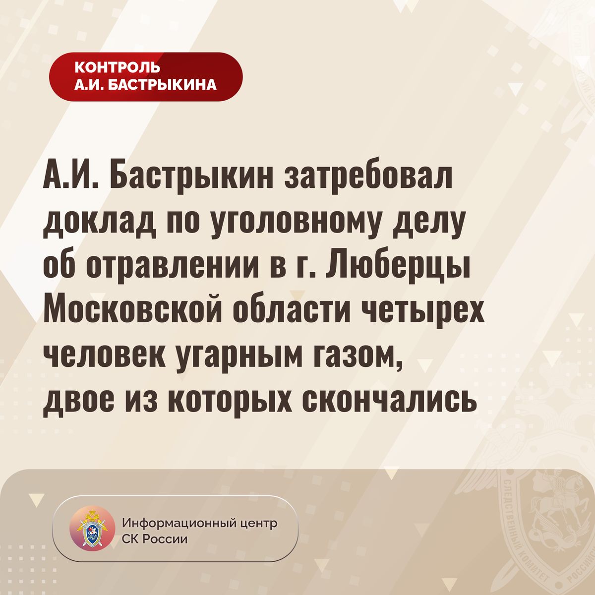 А.И. Бастрыкин затребовал доклад по уголовному делу об отравлении в г. Люберцы Московской области четырех человек угарным газом, двое из которых скончались