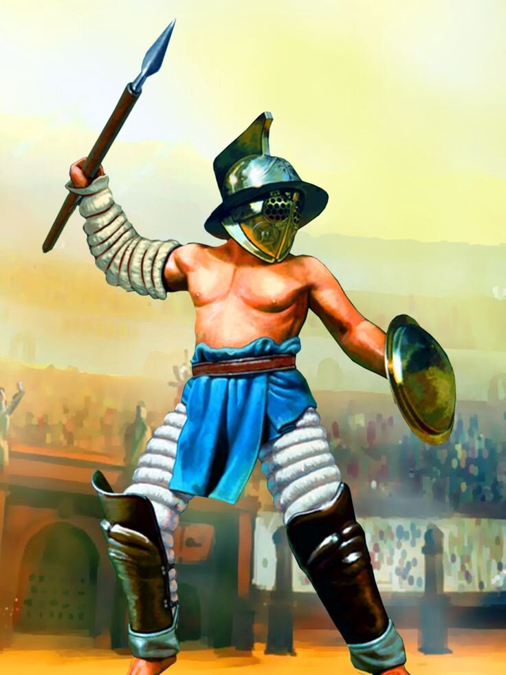 Не секрет, что самым популярным развлечение во времена Римской республики, а тем более во время Римской империи были гладиаторские бои. Это развлечение было настолько популярно что навсегда стало символом древнего Рима и навсегда вошло в культуру римлян. В каждом римском городе обязательно имелась арена для проведения подобных зрелищ, которое обеспечивало развлечение низшим слоям населения, а аристократы подчеркивали свое богатство и значимость. В столь популярном действии были задействованы большое количество типов гладиаторов которые отличались вооружением и стилем ведения боя, вот основные из них: Гопломах - один из самых распространенных типов гладиаторов, снаряжение гопломаха включало в себя круглый греческий щит "гоплом", вооружен он был копьем при этом вел бой на расстоянии, для ближнего боя был римский кинжал-пугио, защита гладиатора состояла из высоких поножей, большого шлема с широкими полями и забралом, а также доспехам для предплечья - маникой. Мирмиллон - очень распростр