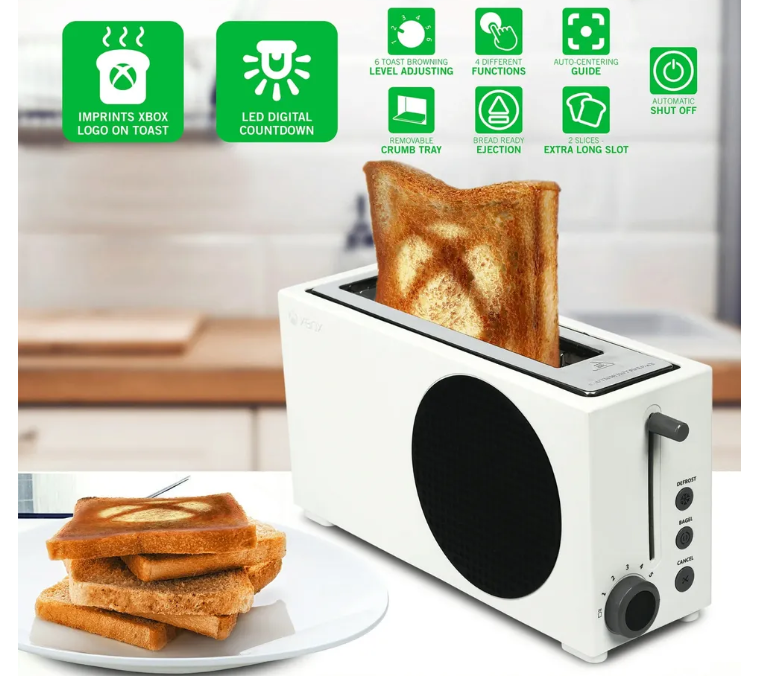 Компания Microsoft представила свой очередной гаджет, а именно тостер в стиле Xbox Series S. Пользователь Wario64 заметил, что этот тостер в стиле Xbox Series S появился в интернет-магазине Walmart по цене 39,99 долларов. Сходство устройства с Xbox Series S трудно оспорить, и, помимо банальной функции поджаривания, это устройство выжигает логотип Xbox на ломтиках хлеба. В этом тостере в стиле Xbox используется популярный механизм с одним длинным и широким слотом и самоцентрирующейся направляющей для хлеба. В описании продукта указано, что длина тостера составляет 15 дюймов. Это должно позволить одновременно прожаривать два куска хлеба. Стоит упомянуть и другие функции этого тостера. Любители теплых бутеров могут выбрать шесть уровней поджаривания. Уровень прожарки будет варьироваться от слегка теплого хлеба до обугленных остатков. В любой момент можно нажать кнопку отмены, если пользователь почувствует, что тост готов, а также есть кнопки для режима бублика и для поджаривания хлеба пря