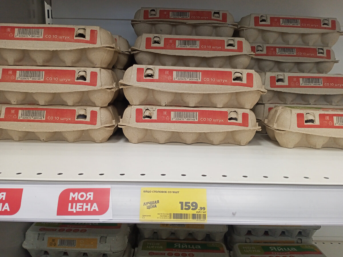 На днях увидел новость, что из Турции и Азербайджана поступили первые партии яиц по 300 тысяч штук в каждой. В надежде, что цены на яйца после этого снизились, подошел к яичной стойке в Магните. Конечно, ведь "Магнит" это самый дешевый магазин для бедных и среднего класса, ну не в "Азбуке вкуса" же их покупать! Ну и сразу хочу сказать, что смотрел я яйца из категории "Моя цена", которые в Магните самые дешевые. Надежды не оправдались. Цены поднялись опять. Несмотря на речь Президента, несмотря на первые партии поставок из Азербайджана и Турции цены на куриные яйца продолжили рост. Не поверив своим глазам, я посмотрел пристальнее. Нет. Зрение не обмануло меня. Цены не упали, а снова выросли. В шутку стал называть куриные яйца - куриной икрой. Удивительный рост за 3 месяца! Еще в октябре брал эти яйца по 85 рублей. Наверное куры досрочно ушли на Новогодние праздники и перестали нестись. Что-ж, яйца продолжают оставаться деликатесом, из них уже не получится сделать дешевый незатейливый