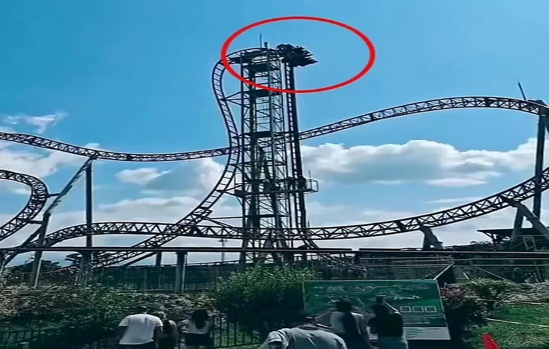 Любители острых ощущений оказались в подвешенном состоянии на сломавшемся аттракционе: видео