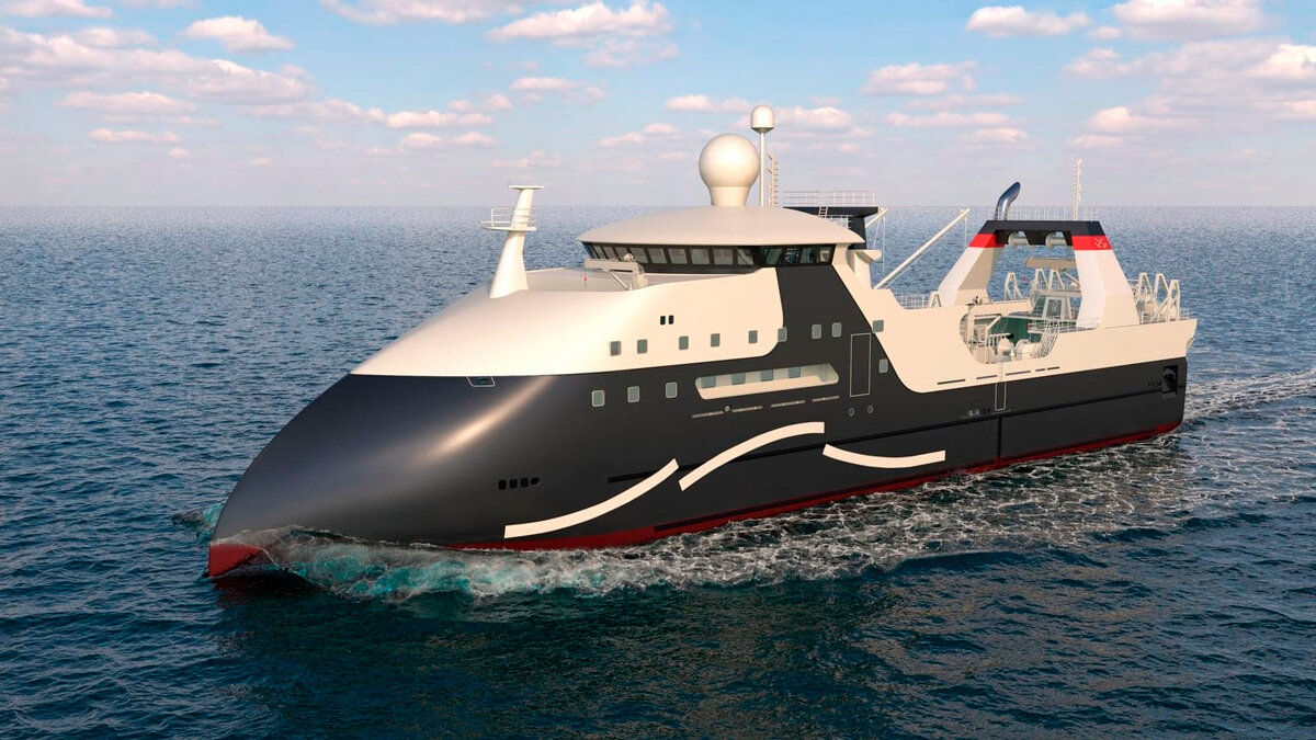 Что касается дизайна, сенсацией ранее стал «заводной апельсин» – самоходная станция «Северный Полюс», названная на Западе «самым уродливым судном в мире». Сейчас же эстафету принимает «Капитан Соколов». Вообще, просто траулер водоизмещением 5500 тонн, скоростью 15 узлов и производительностью до 150 тонн рыбы в сутки. Как теперь принято, траулер одновременно является и плавучим заводом, помимо очищенной, замороженной и расфасованной рыбы, производящим и рыбную муку из отходов. И, опять-таки, как принято для современных рыболовецких кораблей, «Соколов» несёт массу разведывательного оборудования. Для того, чтобы 150 тонн рыбы в день выловить, её в таком количестве прежде нужно найти. Высокая крейсерская скорость, в свою очередь, требуется, чтобы быстро перемещаться от одного скопления к другому.