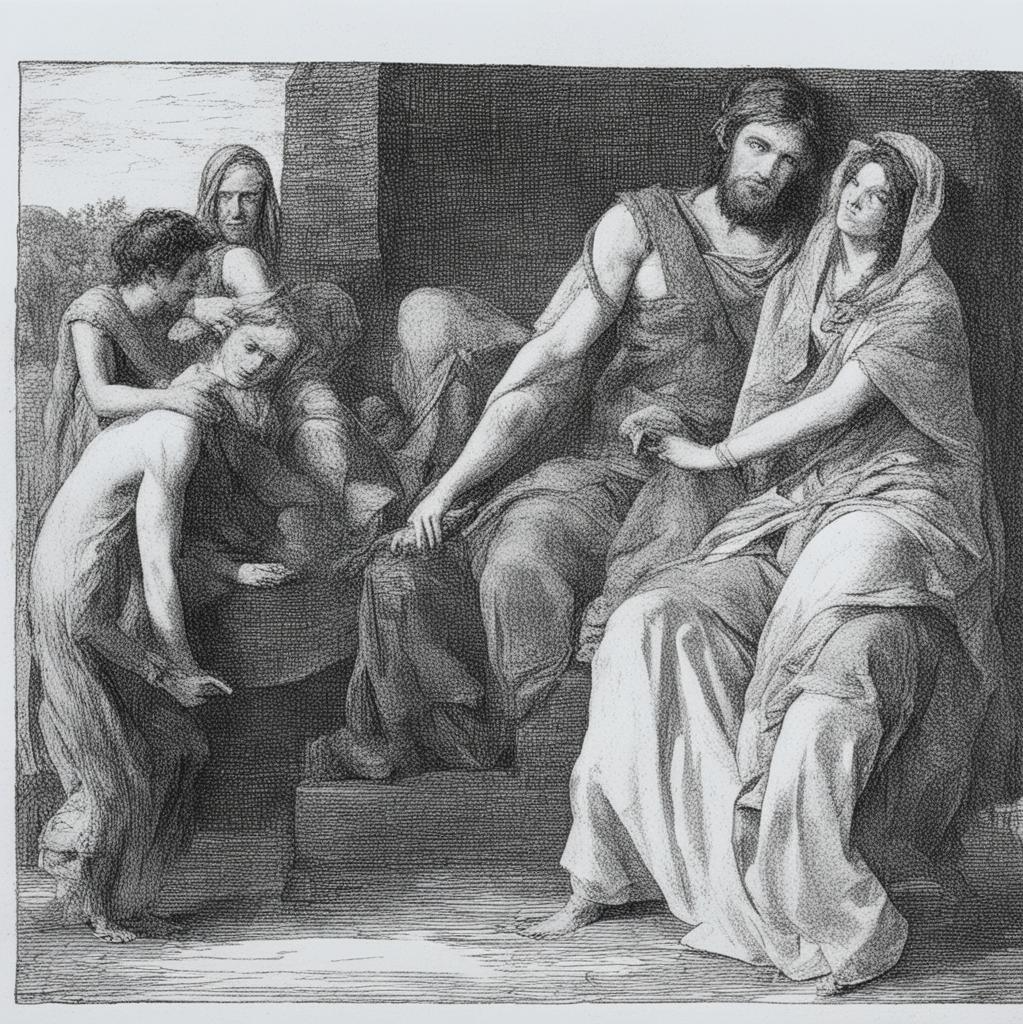 В водах Месопотамии зародилась история, полная преданности, веры и непреодолимого желания следовать воле Господа. Это история о сватовстве Исаака к Ревекке, поведанная в Книге Бытия. Исаак, сын Авраама и Сарры, уже достиг зрелого возраста, и настала пора ему обзавестись семьей. Авраам, опасаясь влияния хананеянок на своего сына, послал своего верного слугу Елиезера на поиски подходящей невесты для Исаака среди своей родни в родном городе Харране. Елиезер, взяв с собой десять верблюдов, нагруженных богатыми дарами, отправился в путь. По прибытии в Харран он остановился у источника воды, где, согласно местным традициям, собирались женщины для наполнения своих кувшинов. Там он обратился к Господу с молитвой, прося послать ему знак, чтобы он мог распознать избранную Господом для Исаака. В тот же миг появилась Ревекка, племянница Авраама, с кувшином на плече. Она с готовностью дала Елиезеру испить, а затем предложила напоить и его верблюдов. Елиезер был поражен гостеприимством и добротой Ре