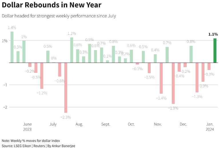 В пятницу доллар оставался стабильным, достигнув самого сильного недельного прироста с июля на фоне охлаждения ожиданий резкого и раннего снижения процентных ставок в этом году в преддверии выхода данных по занятости в США, которые будут опубликованы позднее в тот же день.