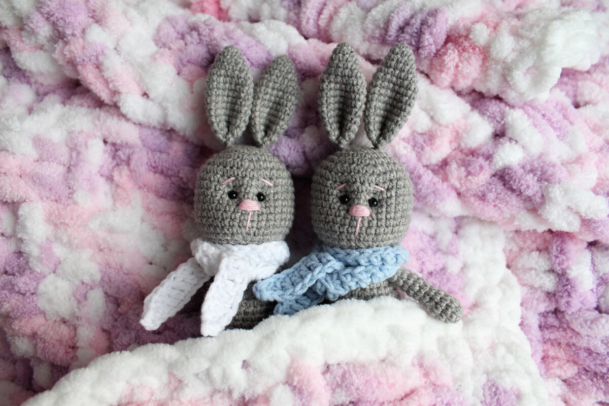 Материалы и инструменты: 1. Пряжа Alize Cotton Gold (55% хлопок, 45% полиакрил; 330 м в 100 г). Серая – сам зайка. 2. Пряжа Jeans от Yarn Art (55% хлопок, 45% полиакрил; 160 м в 50 г). Белая – для шарфика. 3. Пряжа Coco от Vita Cotton (100% хлопок, 240 м в 50 г). Немного розовой – носик, бровки и ротик. 4. Глазки бусинки 4 мм. У меня полубусина на петельке. 5. Прочная нить, для утяжки и пришивания глаз. 6. Синтепух. 7. Крючки, основной 1,75 мм и 3,5 мм – для вязания шарфика. 8. Ножницы. 9. Игла. 10. Пинцет и палочка – как от суши, для наполнения игрушки синтепухом. Обозначения: вп – воздушная петля. сбн – столбик без накида. сс – соединительный столбик. (Ещё называют полустолбик без накида). полустСн – полустолбик с накидом. сС1Н – столбик с одним накидом. приб – прибавка* * два столбика без накида провязанные в одну петлю. уб – убавка** ** два столбика без накида провязанные вместе и образующие в итоге один столбик без накида. Приятного вязания :) Голова: Пряжей серого цвета и крючко