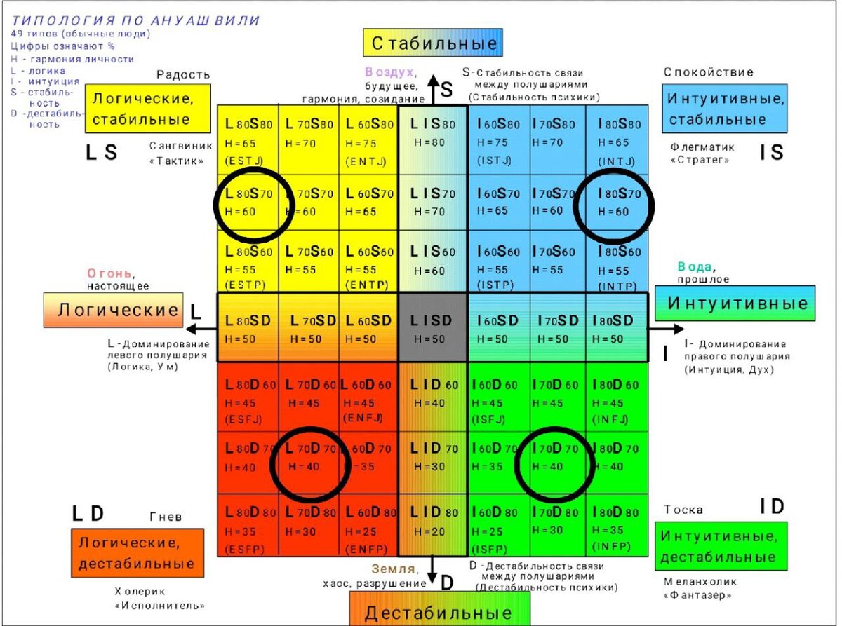 ФУНДАМЕНТАЛЬНЫЕ НЮАНСЫ В ЦВЕТОТЕРАПИИ Важные рекомендации от Ольги Бадаг. Психолог, ученица профессора А. Ануашвили, специалист международного уровня «Видео-компьютерная психодиагностика и психокоррекция» «Научные основы психологии». Более 25 лет успешной практики с использованием методов объективной психологии. Согласитесь, что каждый человек индивидуален, поэтому к процессу цветотерапии следует грамотно находить подход. Следует с большой осторожностью относиться к общепринятым публикациям по цветотерапии, чтобы не навредить самому себе. В методе Научной психологии, мы изначально определяем посредством Психодиагностики факт того, какая объективная психологическая характеристика у человека. И только исходя из наглядных параметров, эксперт рекомендует использование цветовой гаммы, которая будет способствовать улучшению психологического состояния и гармонизации личности. Объясняю максимально просто. Ниже приведена таблица, в которой видно 49 психотипов личности. А теперь внимательно посм