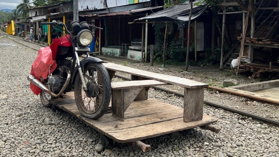 В мире полно причудливых приспособлений, созданных для езды по узкоколейным железным дорогам. В Румынии по старым путям лесозаготовительных предприятий курсируют модифицированные фургоны Ford Transit, а на гипсовый карьер в 50-х годах работников возил лимузин Chrysler с двумя кабинами. Но эти колумбийские «брухиты», которые перевозят местных жителей и туристов по заброшенной узкоколейной железной дороге вглубь тропического леса, пожалуй, самые энергичные и самые простые с точки зрения конструкции. «Брухита» в переводе с испанского означает «маленькая ведьма». Они представляют собой мотоцикл, установленный на деревянной платформе. Его заднее колесо опирается на рельсовую колею и отвечает за тягу. Деревянная платформа оснащена скамейками для пассажиров и катится на крошечных стальных колёсах. У некоторых теперь есть брезентовые крыши, чтобы защитить путешественников от частых тропических дождей. Простота «брухит» имеет несколько ключевых преимуществ. Первое: топливная экономичность: сопр