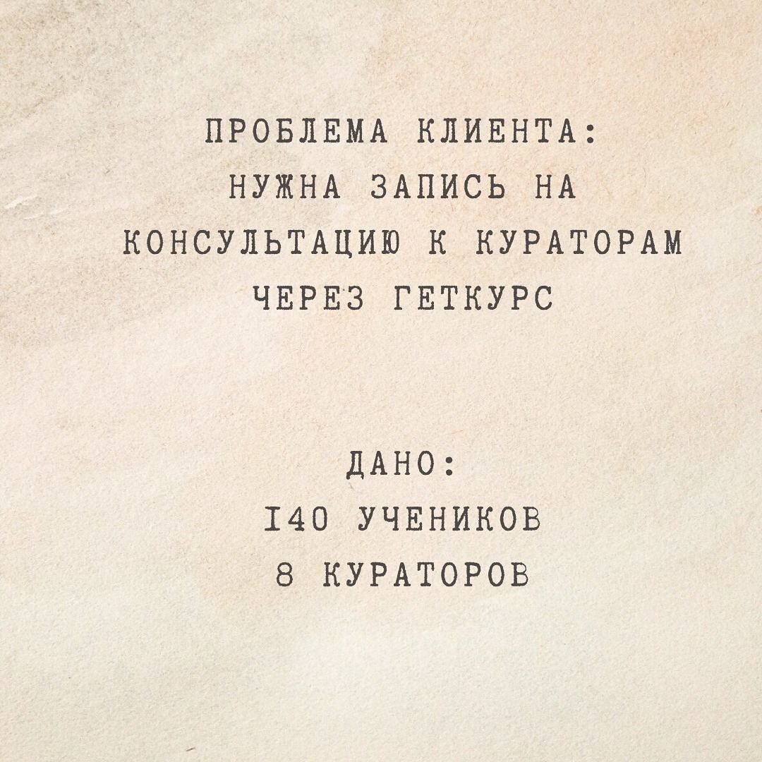 В октябре 2021 года ко мне обратился проджект менеджер онлайн школы с просьбой придумать как можно делать запись к кураторам в ГК без сторонних сервисов. И с помощью Школы Магии, я придумала следующую схему. Смотри в слайдере ниже Если нужно могу повторить в вашем проекте. Пишите мне в личные сообщения в телеграм https://t.me/chekazoya