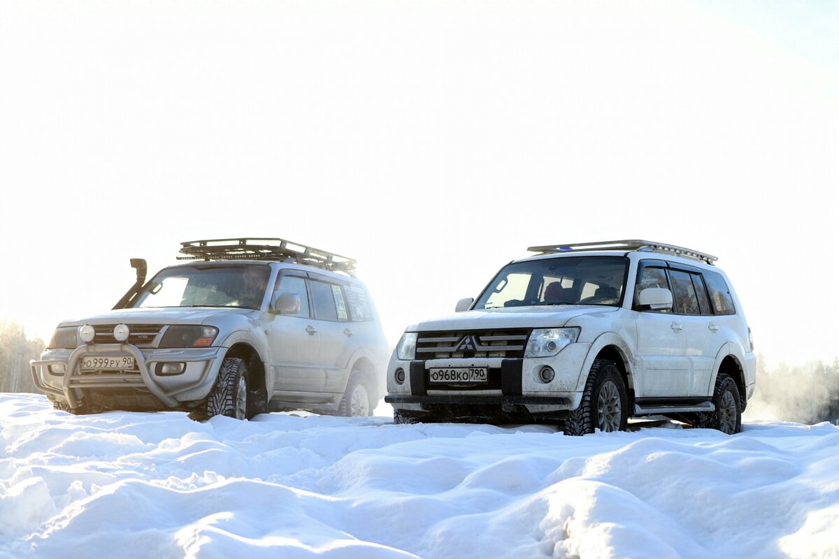 2 января, пока вся страна доедает прошлогодние салатики, мы решили в составе 4 машин потоптать замерзший снежок. Накануне нового года была сильная оттепель, температура держалась +3 около двух недель с периодическими дождями. И резко вдарили морозы под 30 градусов. Весь снег превратился в твердую корку, которая спокойно выдерживает вес человека, но продавливается машиной даже с давлением в колесах 0.4-06 атмосфер. Под коркой он рыхлый, получается стиль езды как по песку. Только верхний слой тормозит машину и она сразу зарывается. Наша цель — переехать реку Киржач по мосту от бывшей узкоколейной железной дороги. Он узкий, но еще в хорошем состоянии. 2 километра от дороги через поле до моста, но мы преодолевали это поле более 4 часов. До моста добрались уже в сумерках. Мост оказался довольно широким. Машина помещается с запасом, рядом с ней можно даже пройти бочком. Но ситуацию осложнял снежный наст, по которому автомобиль мог соскользнуть с траектории. Кроме снегоходов, по нему