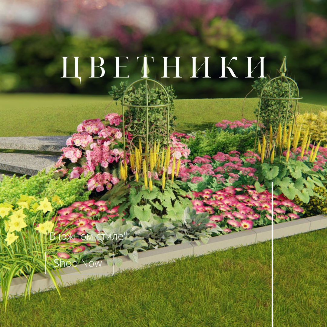Состав: Описание: Яркий цветник для средней полосы, стилизованный под южные склоны. Объем цветнику задают кованные обелиски увитые девичьим виноградом. Незабываемо красивая гортензия "хот ред" на подъеме склона, является центром притяжения внимания. Она расположена в окружении белоснежных лепестков пиона "Мисс Америка". На среднем плане цветник пронизывают свечки вербейника и шалфея дубравного. У самых ступеней мы посадили великолепную дармеру щитовидную с крупными резными листьями. Для подбивки цветника подойдет астра альпийская, а как почвопокровник можно использовать вербейник монетчатый он замечательно заполняет пустоты и имеет осень приятный мятный оттенок листвы.