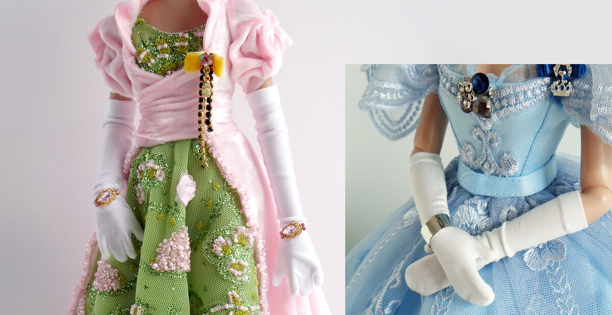 И еще очень важен выбор ткани для перчаток. Она должна быть максимально эластичной - растягиваться в разные стороны. Если это трикотаж, то он должен быть стабильным, не распускаться, не пускать стрелки, края не должны рыхлиться и осыпаться. Ткань должна быть тонкой. И даже самая тонкая ткань дает на кукле утолщение. И кажется, что перчаткам на кукле не место. Однако, вспомните человеческие руки в перчатках. Даже самые тонкие перчатки утолщают и наши руки. Так что не будьте строги к самим себе и куклам.