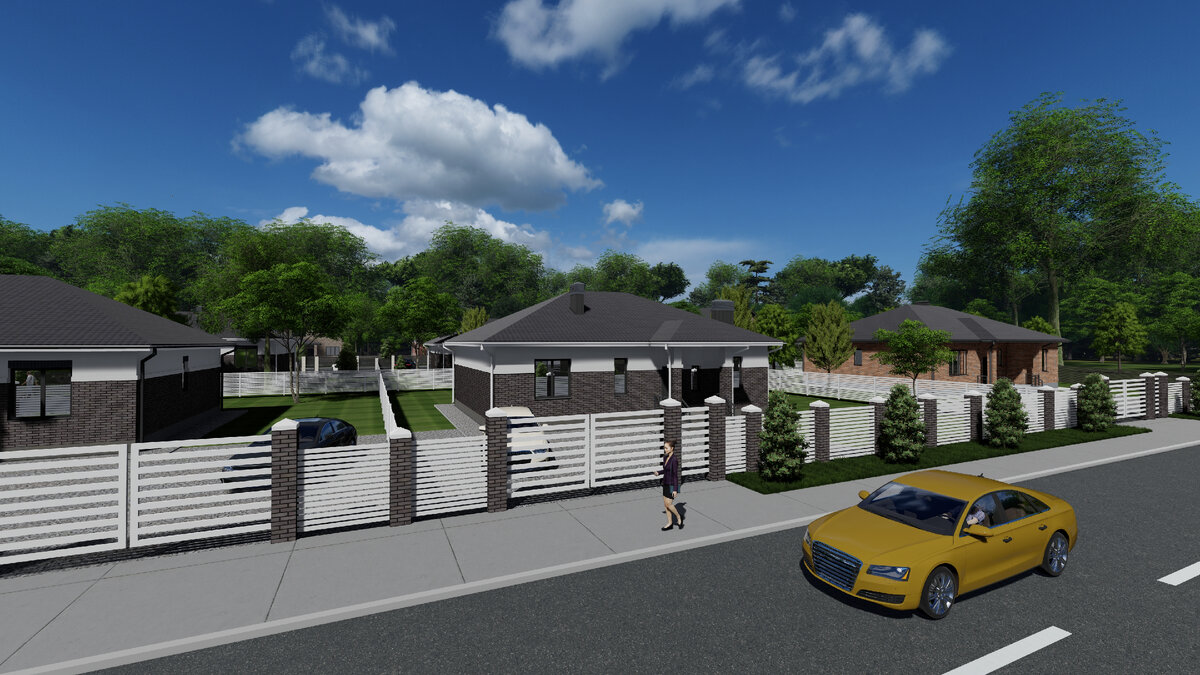 Добрый день! Всех-всех с Новым годом и Рождеством! Сегодня рассмотрим вариант планировки одноэтажного дома на 130кв.м. Ваше мнение ждем в комментариях. Фасады дома смотрите в галерее ниже В основе планировочной структуры дома применен принцип функционального зонирования помещений на индивидуальную и коллективную зоны. Индивидуальная зона охватывает функции сна, занятий, личной гигиены, отдыха. Учитывая специфику бытовых процессов, в этой зоне обеспечена максимальная изоляция входящих в нее помещений. Спальные комнаты сгруппированы и находятся в левом крыле дома. В спальне №1 выделены гардеробная и душевая комнаты. Коллективная зона включает в себя холл и общую комнату (кухню-гостиную). При холле предусмотрен санузел. Из гостиной предусмотрен выход на террасу через витражное окно. Функциональная связь между зонами осуществляется через холл. Крыльцо дома выполнено в виде навеса на двух кирпичных столбах.