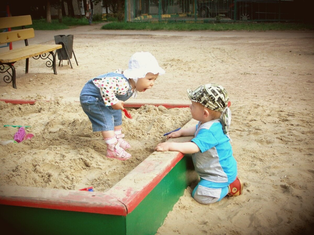 Теперь она часами зависает с ними в песочнице, делает куличики и возит на машинках камушки, листья, лопаточки, строит дороги и мосты. Ей это очень нравится. Она бывает неутомима, особенно, когда слышит веселый детский смех и волшебные слова: