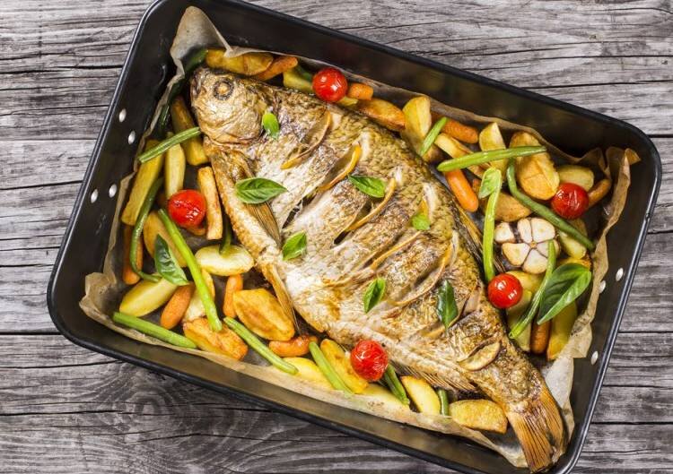 Карп в духовке В Восточной Европе принято запекать рыбу со сметаной и сыром, однако в Сочельник от таких начинок стоит отказаться. Можно запекать с лимоном и травами, добавив немного овощей. Вместо них берут: Этапы приготовления: 1. Рыбу промывают, счищают чешую. В области ребер делают надрезы. 2. Для маринада смешивают бальзамический уксус, мед, растительное масло и приправы. 3. Помещают в него тушку рыбы и выдерживают на протяжении часа. 4. На предварительно смазанный противень помещают рыбу и заворачивают в фольгу, доливая в нее остатки маринада. 5. Время приготовления 40 мин при 200 градусах. 6. Для подачи использовать подушку из овощей, на которой запекалась рыба. Приятного аппетита если понравилось ставь лайк и не забудь подписаться!!!