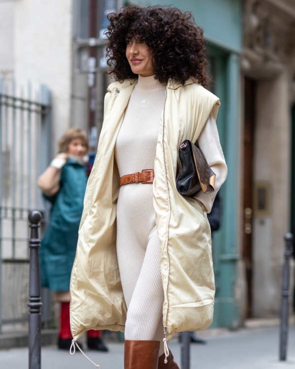 Жилет без стежки напоминает одеяло — легко мнется, смотрится небрежно... Я бы не рекомендовала выбирать такую модель. Сейчас актуальны варианты из плотной ткани, стеганые, которые хорошо держат форму и за счет этого визуально делают образ более собранным.