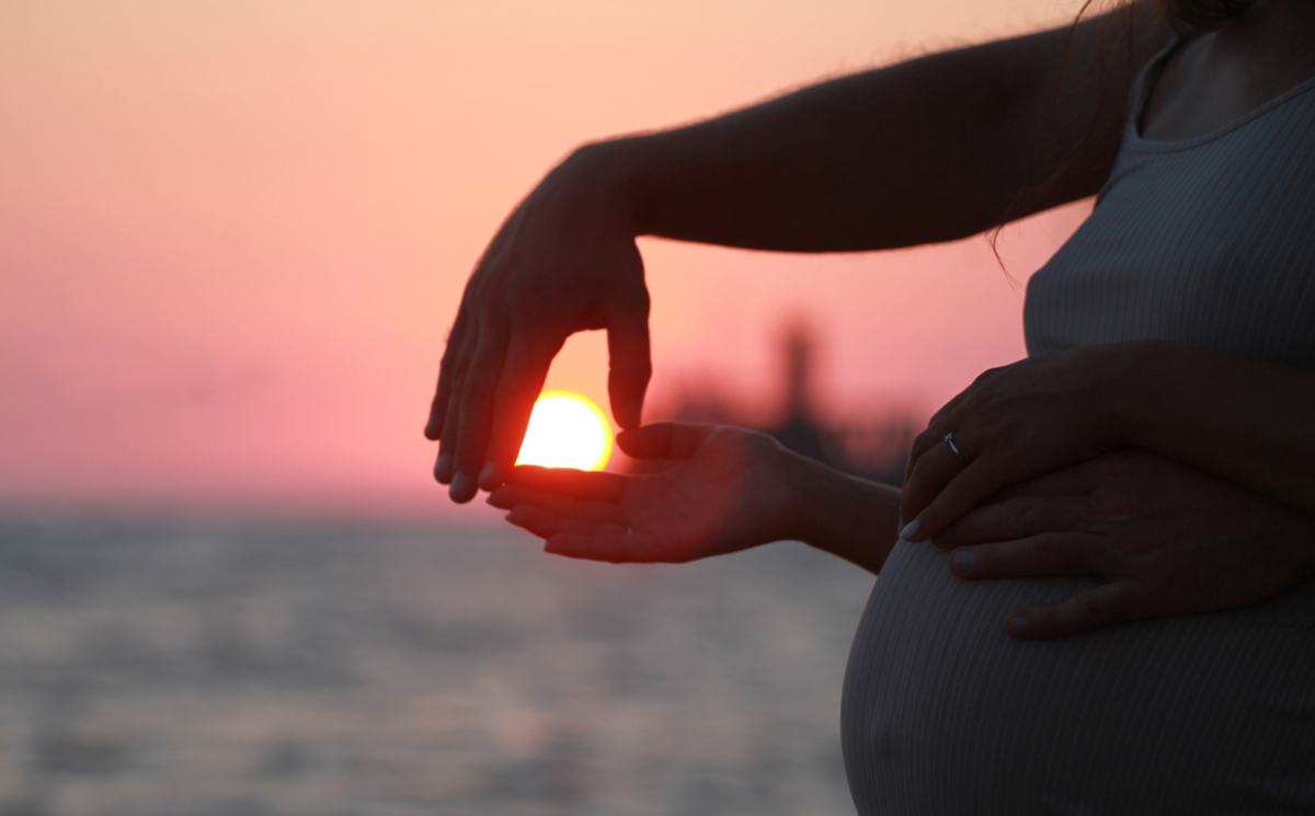 Беременность - очень теплое время для обоих супругов, и запечатлеть момент перед рождением на фоне нежнейшего заката - отличная идея