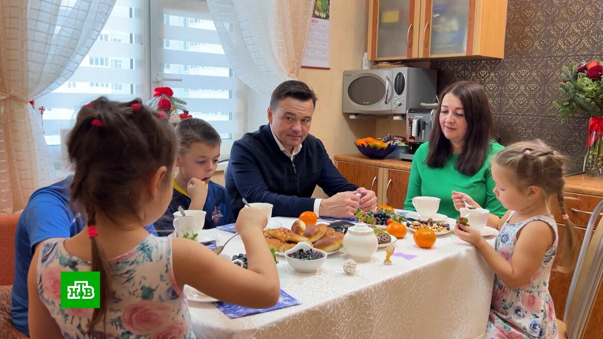 Губернатор Московской области Андрей Воробьёв приехал в Кубинку, чтобы поздравить семью Героя России Александра Сычёва с Новым годом и наступающим Рождеством.