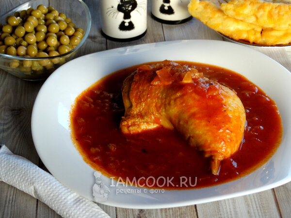 Куриные окорочка в таком варианте получаются нежными, сочными и очень вкусными. Их можно подать абсолютно с любым гарниром. А при подаче на стол гарнир обязательно нужно полить вкуснейшим томатным соусом, в котором готовилась курица. Блюдо хоть и простое, но очень вкусное. Для ужина или обеда на каждый день - отличный вариант! Куриные окорочка в томатном соусе на сковороде Обязательно используйте специи. Благодаря им курица в соусе получается безумно ароматной и вкусной. 📝ПРИГОТОВЛЕНИЕ: 1. Обжарьте куриные окорочка с двух сторон на разогретой с растительным маслом сковороде. После чего курицу достаньте. 2. В ту же сковороду отправьте лук. Жарьте до мягкости. Затем влейте разбавленную в воде томатную пасту. Всыпьте сахар, соль и специи. Перемешайте и отрегулируйте вкус по собственным ощущениям. 3. Затем возьмите небольшой сотейник и положите туда обжаренную курицу. Влейте весь томатный соус и готовьте под крышкой минут 20. Можно готовить и в той же сковороде, но тогда, возможно, соус н