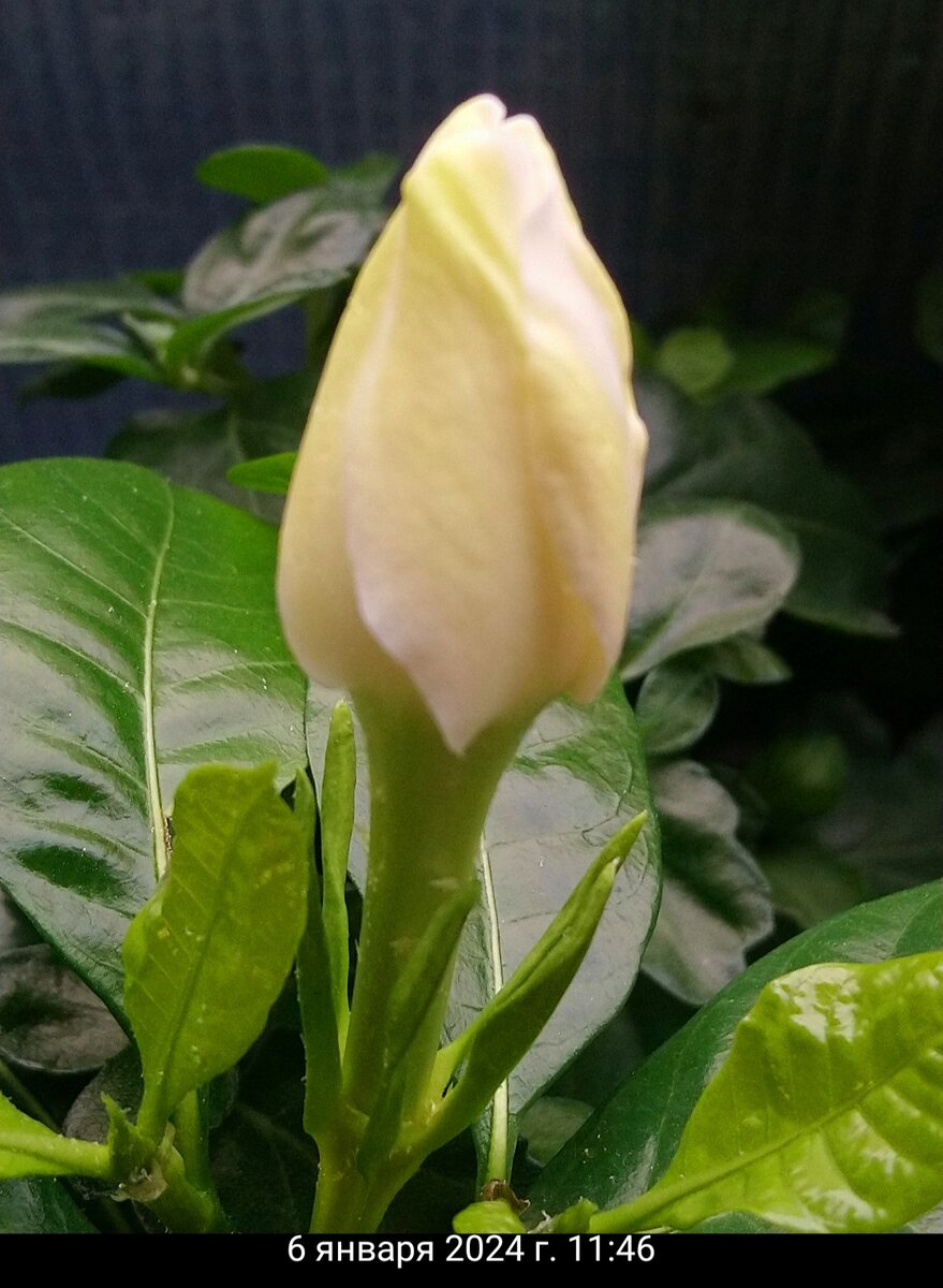 Накануне Рождества раскрылся долгожданный цветок гардении. О таком подарке я и не мечтала, а он с утра раскрывал лепесток за лепестком и к вечеру раскрылся, подарив свою красоту и нежнейший аромат! У каждой фотографии указано время, чтобы вы могли иметь представление, как раскрывался бутон. Люблю выходные дни, когда моё утро начинается ближе к обеду. Ещё вчера бутон был зелёного цвета, а сегодня имеет приятный кремовый цвет с чуть зелёным оттенком и побелевшей кромкой видимых лепестков. Вот, как надо вовлекать в процесс, весь день пробегала около гардении, наблюдая за происходящим. Лепестки светлели и через три часа началось таинство раскрытия цветка. Гардения считается капризным растением. Ей все время что-то не нравилось. Летом на неё нападал паутинный клещ. На подоконнике ей не хватало света. Пришлось на тёплое время года растение переставить на балкон, где гардения активно росла. С поливом вносила удобрения. Листья часто опрыскивала, что очень любит Гардения. Осенью, во время