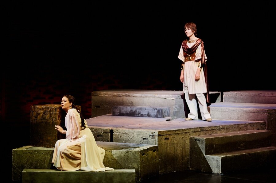 В тот вечер партию Идаманта, сына Идоменея, исполняла Дарья Телятникова , приглашённая солистка Мариинского театра. Хрупкая, статная, с мальчишеской грацией и блестящими глазами. Её Идамант был искренним, импульсивным, страстным идеалистом. Её голос - меццо-сопрано - чистый, нежный и сильный, дикция, фразировка - прекрасные. Идамант был настоящим, с волнением следила за его судьбой.